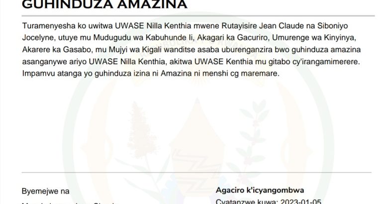 You are at :Home»Amakuru»INGINGO Z’INGENZI Z’IMPAMVU YO GUSABA GUHINDUZA AMAZINA