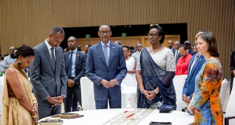 Abayobozi muri Guverinoma, abikorera ku giti cyabo n’abagize sosiyete sivile kuri iki Cyumweru bateraniye muri Kigali Convention Centre mu masengesho yo gusengera igihugu azwi nka National Prayer Breakfast.