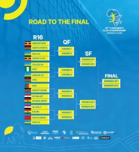 Ku mugoroba wo kuri uyu wa Mbere, tariki ya 27 Mata 2026, hasojwe imikino y’amatsinda ya Shampiyona Nyafurika ya Volleyball mu Bagabo (CAVB Men’s Club Championship 2026) iri kubera mu Rwanda, hamenyekana amakipe 16 azakomeza muri 1/8 cy’irangiza nyuma y’urugendo rw’imikino itanu kuri buri kipe.