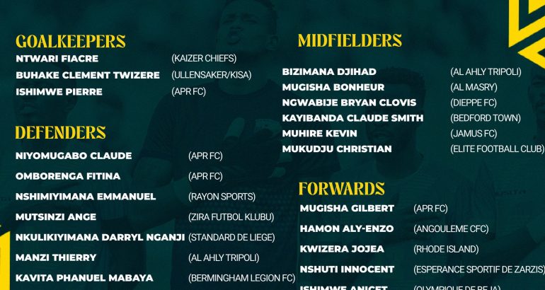 Urutonde kandi ruriho abakinnyi bamaze igihe mu ikipe y’igihugu, barimo nka Omborenga Fitina, Niyomugabo Claude, Muhire Kevin, na Mugisha Gilbert.