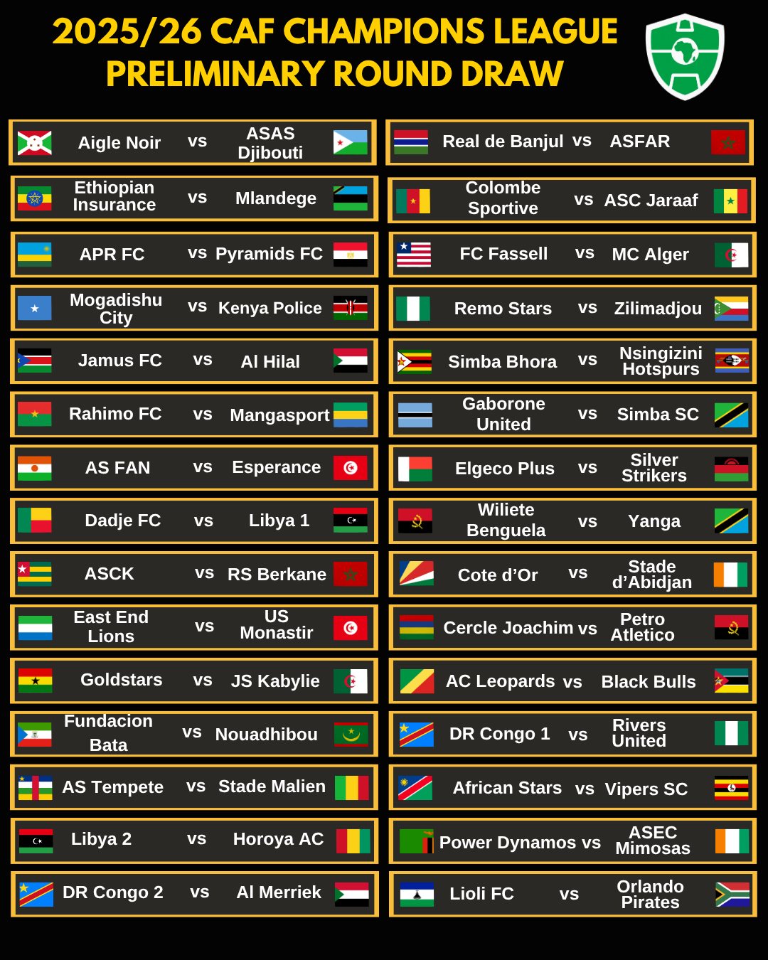 Nyuma yo gusoza shampiyona y’umwaka wa 2024/25 aho APR FC yegukanye igikombe cya shampiyona, iyi kipe yatomboye Pyramid FC yo mu misiri mu irushanwa rya CAF Champions League.