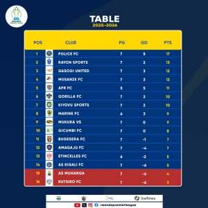 Nyuma y’umunsi wa 7 wa Shampiyona y’u Rwanda, ikipe ya Rayon Sports iri ku mwanya wa kabiri n’amanota 13.