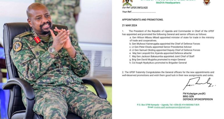 Museveni kandi yazamuye mu ntera abandi basirikare bakuru nka Brig Gen David Mugisha wahawe ipeti rya Major General na Col Asaph Nyakyikuru wahawe ipeti rya Brig General.