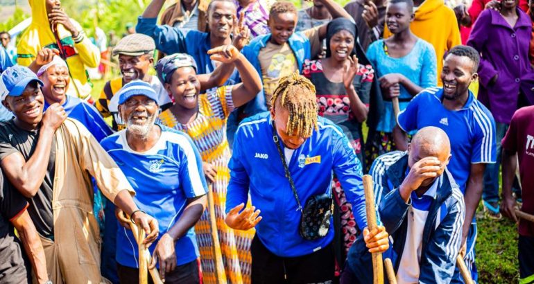 Igikorwa cyo gutemberezwa ibice bitandukanye by’ingoro y’amateka yo mu Rukali,Ubuyobozi, abatoza ndetse n’abakinnyi ba Rayon Sports bifatanyije n’abaturage bo mu Karere ka Nyanza mu gikorwa cy’Umuganda rusange wakorewe I Mugandamure.