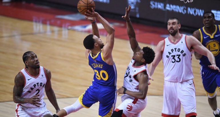 Stephen Curry yatsinze amanota 31 muri uyu mukino ku ruhande rwa Golden State Warrios, asama imipira umunani iva ku nkangara, atanga kandi indi mipira irindwi kuri bagenzi be batsinda amanota mu gihe Kawhi Leonard yatsinzemo 26 ku ruhande rwa Toronto Raptors.
