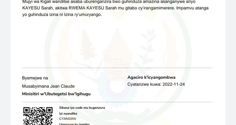 Mujyi wa Kigali wanditse asaba uburenganzira bwo guhinduza amazina asanganywe ariyo