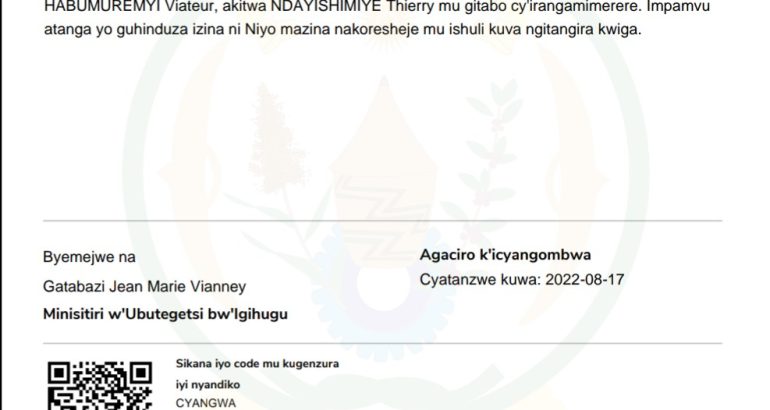 HABUMUREMYI Viateur, akitwa NDAYISHIMIYE Thierry mu gitabo cy’irangamimerere.