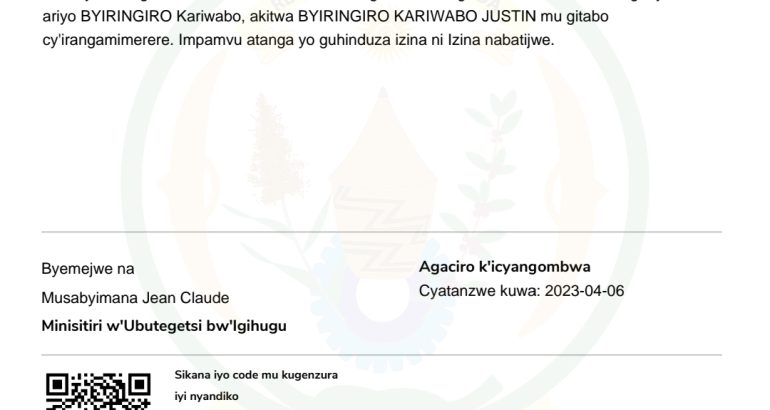 ariyo BYIRINGIRO Kariwabo, akitwa BYIRINGIRO KARIWABO JUSTIN mu gitabo