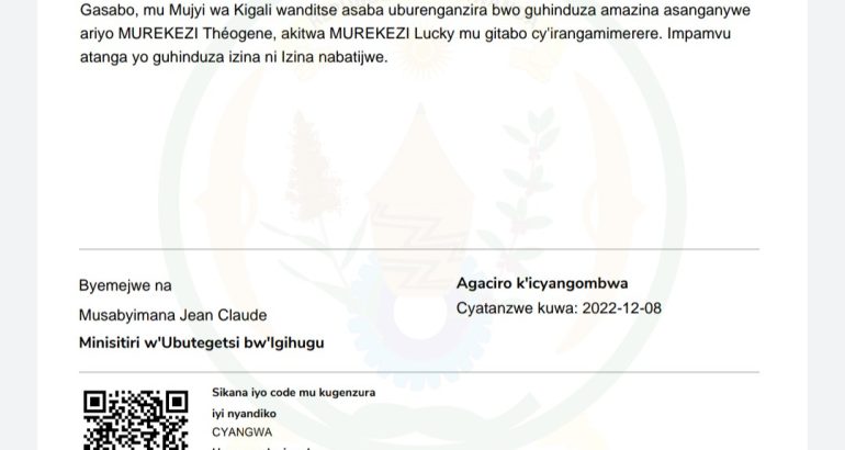 You are at :Home»Uncategorized»INGINGO Z’INGENZI Z’IMPAMVU YO GUSABA GUHINDUZA AMAZINA