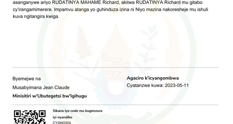 cy’irangamimerere. Impamvu atanga yo guhinduza izina ni Niyo mazina nakoresheje mu ishuli kuva ngitangira kwiga.