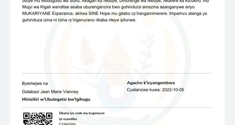 MUKARIYANE Esperance, akitwa SINE Hope mu gitabo cy’irangamimerere. Impamvu atanga yo