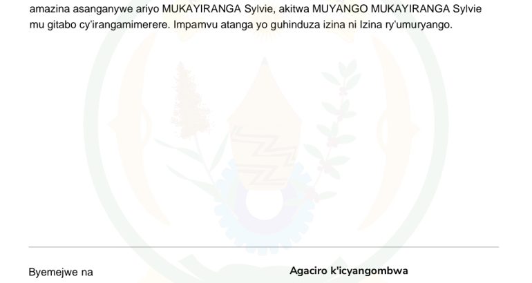 Turamenyesha ko uwitwa MUKAYIRANGA Sylvie mwene Muyango Pierre Claver na Uwimana