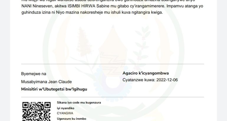 mu Mujyi wa Kigali wanditse asaba uburenganzira bwo guhinduza amazina asanganywe ariyo