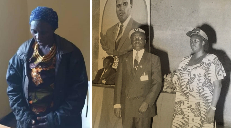 Ibumoso: Angelina Mukandutiye akiva mu mashyamba ya Kongo ageze mu Rwanda. Iburyo, Angelina ari kumwe na Nzirorera Joseph wari Umunyamabanga Mukuru wa MRND