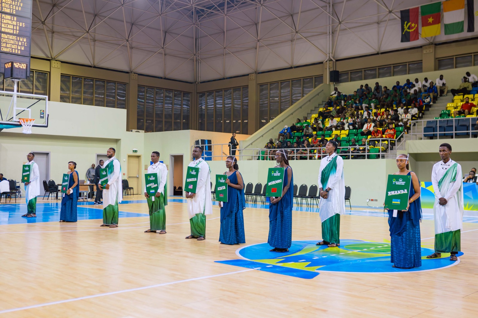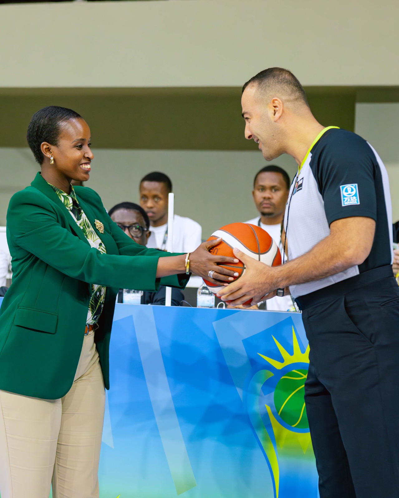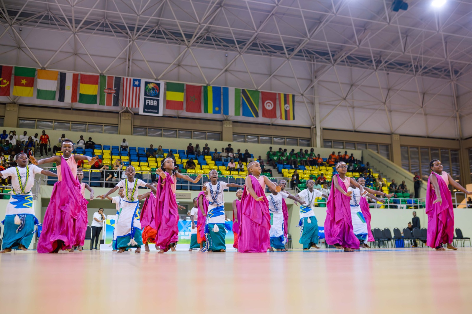Minisitiri wa Siporo, Nelly Mukazayire, ari kumwe n’Umunyamabanga wa Leta muri Minisiteri ya Siporo, Rwego Ngarambe, bitabiriye ibirori byo gufungura ku mugaragaro Igikombe cya Afurika cy’abatarengeje imyaka 16 mu mukino wa Basketball (Afrobasket U16), cyatangiriye i Kigali ku wa Kabiri.