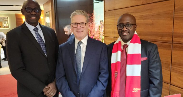 Yagize ati “Mu mujyi wa London wari wuje imvura, Indashyikirwa William Saliba, Umunyabigwi Nuanko Kanu, Minisitiri w’intebe w’u Bwongereza Keir Stamer, Ambasaderi Johnston Busingye nanjye ubwanjye twari kumwe kuri Emirates Stadium.