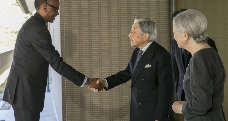 Perezida Paul Kagame na Madamu Jeannette Kagame bari mu ruzinduko rw’akazi mu Buyapani, kuri uyu wa Kabiri bakiriwe n’Umwami w’Abami Akihito utwara iki gihugu.