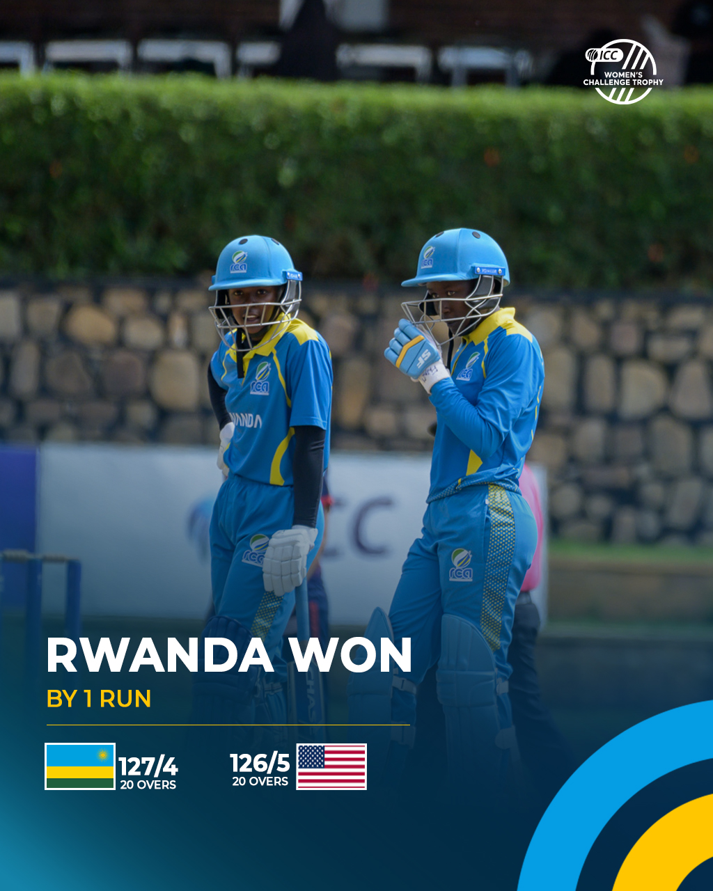 Umukino warangiye Amerika ishyizeho amanota 126, imaze gusohorwamo abakinnyi batanu (wickets 5), bituma u Rwanda rwegukana intsinzi ku kinyuranyo k’inota rimwe.