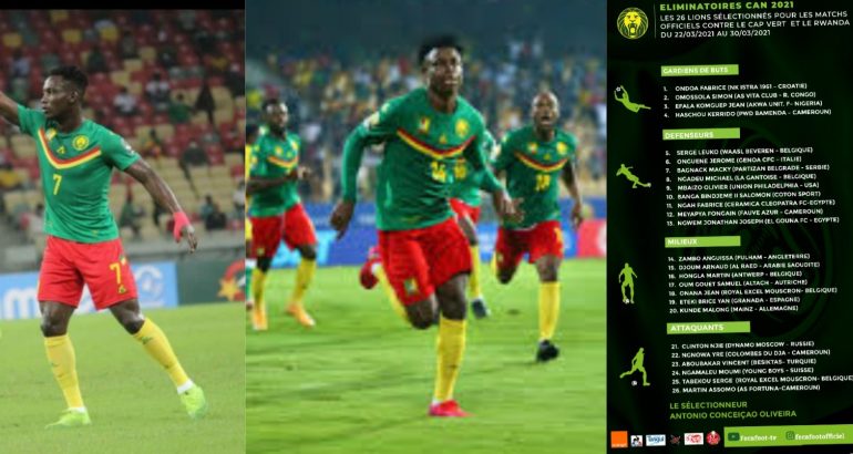 Umutoza António Conceição utoza ikipe y’igihugu ya Cameroon akoze impinduka mu rutonde rw’abakinnyi 25 bitegura imikino ya Cap-Vert n’u Rwanda